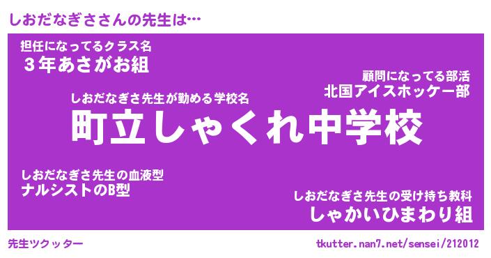 | ツイッター | しおだなぎささんのツイッターID『namakemono_nyan』 |