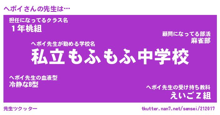 | 意味不明あだ名 | 『ペロリンヘボイ』『ヘボイフォーエバー』 |