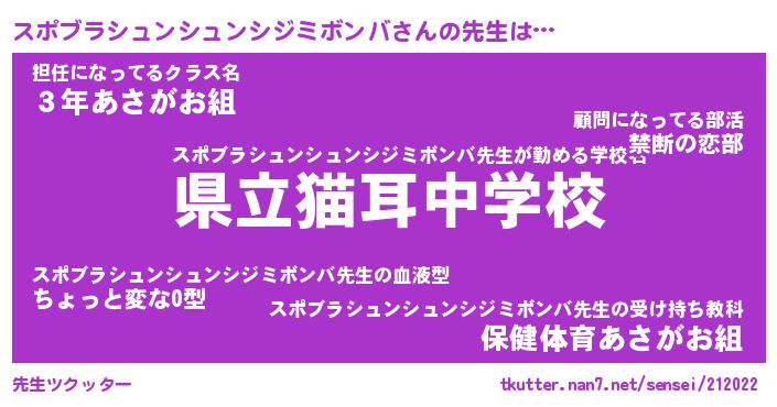 | ヒーロー風カッコイイあだ名 | 『スーパースポブラシュンシュンシジミボンバ』 |