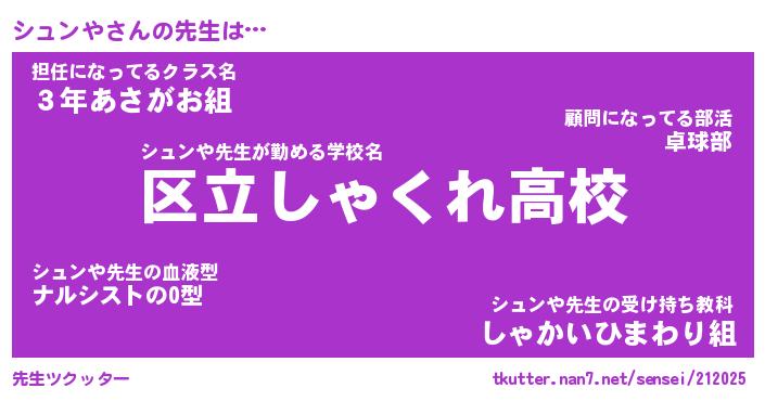 | 意味不明あだ名 | 『ペロリンシュンや』『永久保存シュンや』 |