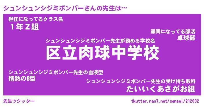 | ヒーロー風カッコイイあだ名 | 『スーパーシュンシュンシジミボンバー』 |