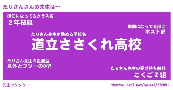 | 意味不明あだ名 | 『ペロリンたりさん』『永久保存たりさん』 |