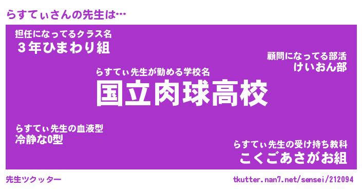 | ヘコむあだ名 | 『らすふぇ~』『酢こんぶ』『らすを』 |
