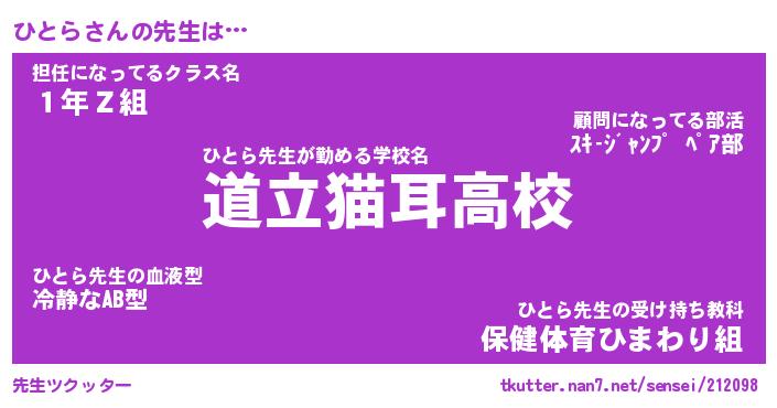 | ヘコむあだ名 | 『ひとにー』『つくし』『ひとっ子』 |