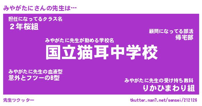 | ファンタジー風あだ名 | 『ミヤフェル』『エターナルミヤガタニー』 |