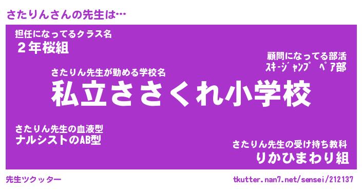 | 意味不明あだ名 | 『ペロリンさたりん』『永久保存さたりん』 |