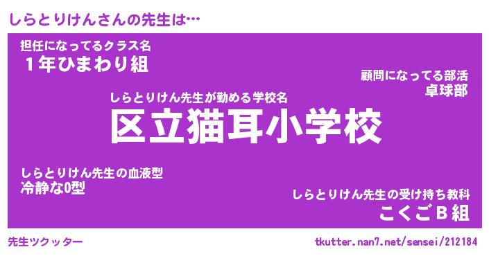 | 肩書あだ名 | 『しらとりけん社長』『しらとりけん班長』 |