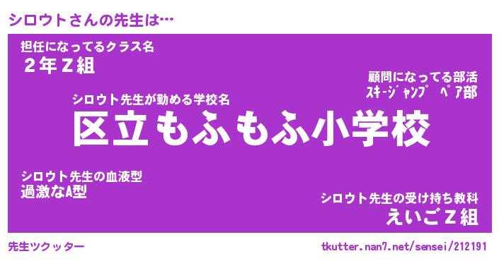 | ヘコむあだ名 | 『シロにゅー』『つくし』『シロを』 |