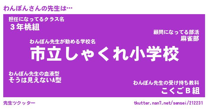 | 意味不明あだ名 | 『ペロリンわんぽん』『永久保存わんぽん』 |