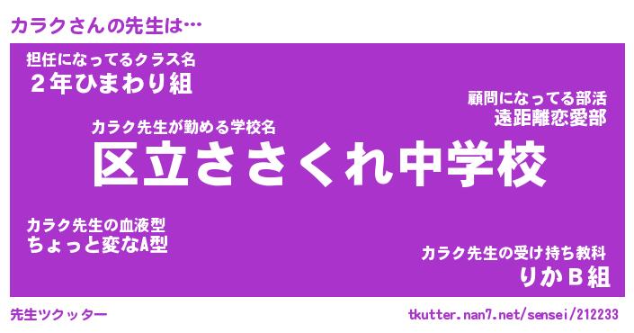 | 意味不明あだ名 | 『ペロリンカラク』『カラクフォーエバー』 |