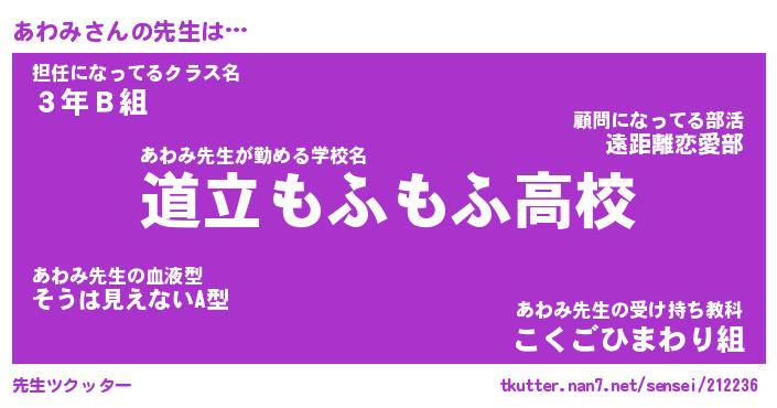 | 欧米人風あだ名 | 『マイケルあわみ』『あわみクリステル』 |
