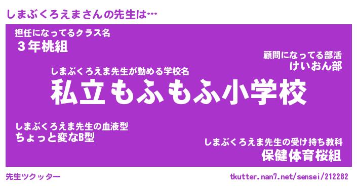 | 2回繰り返すあだ名 | 『しましま』『ししまま』『ぬめぬめ』 |