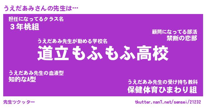 | ファンタジー風あだ名 | 『ウエフェル』『エターナルウエダアミー』 |