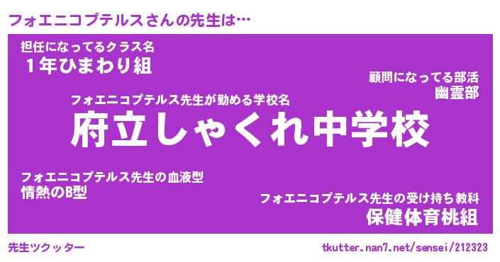 | 伝説のあだ名 | 『封印されしスナイパーフォエニコプテルス』 |