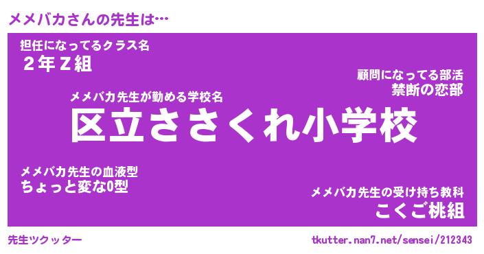 | ヒーロー風カッコイイあだ名 | 『スーパーメメバカ』『暗黒騎士メメ』 |