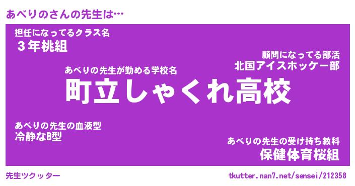 | 伝説のあだ名 | 『封印されしスナイパーあべりの』 |
