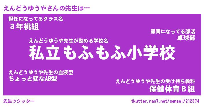 | ヘコむあだ名 | 『えんにゅー』『つくし』『えんお』 |