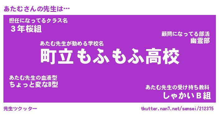 | 意味不明あだ名 | 『ペロリンあたむ』『あたむフォーエバー』 |