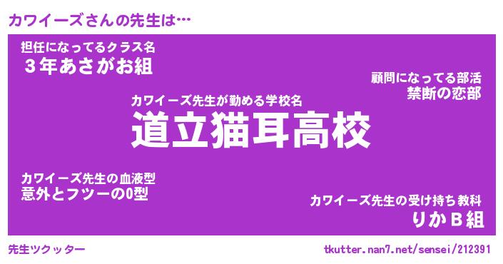 | ファンタジー風あだ名 | 『カワフェル』『エターナルカワイーズー』 |