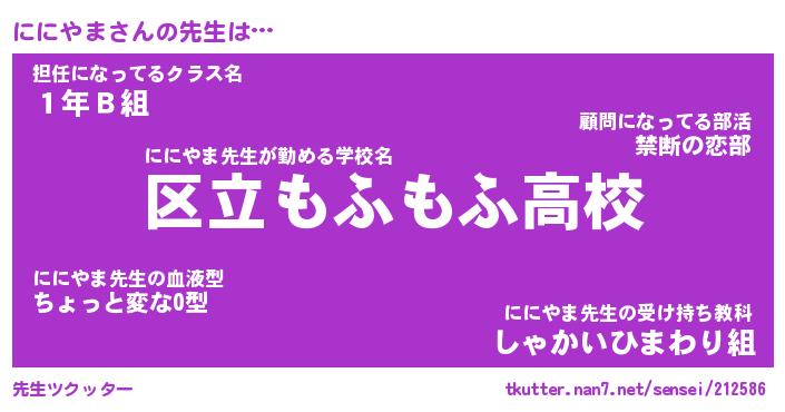 | 意味不明あだ名 | 『ペロリンににやま』『永久保存ににやま』 |
