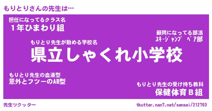 | ヒーロー風カッコイイあだ名 | 『スーパーモリトリ』『銀牙騎士モリ』 |
