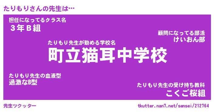 | ヘコむあだ名 | 『たりにー』『酢こんぶ』『たりお』 |