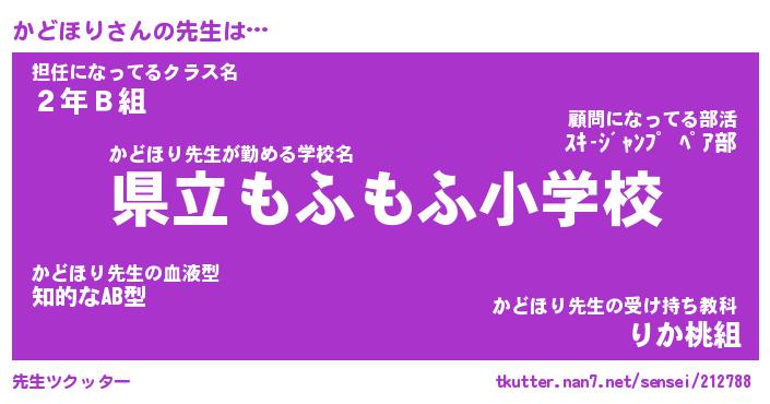 | ヘコむあだ名 | 『かどにゅー』『なまこ酢』 |