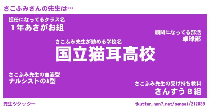| ファンタジー風あだ名 | 『サコフェル』『エターナルサコフミー』 |