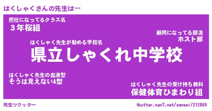 | ヘコむあだ名 | 『はくっふぃ~』『酢こんぶ』 |