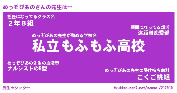 | 男性向けラノベタイトル風あだ名 | 『めっぞぴあのの憂鬱』 |