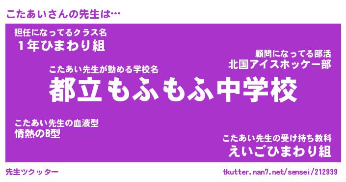 | 意味不明あだ名 | 『ペロリンこたあい』『永久保存こたあい』 |