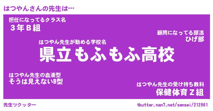 | ファンタジー風あだ名 | 『ハツフェル』『エターナルハツヤンー』 |
