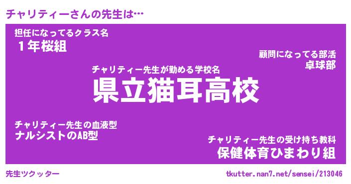 | ヒーロー風カッコイイあだ名 | 『スーパーチャリティー』『暗黒騎士チャ』 |