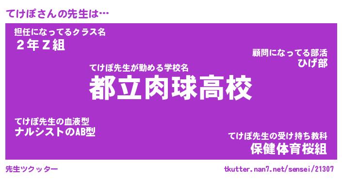 | ヒーロー風カッコイイあだ名 | 『スーパーテケポ』『ウルトラてけぽマン』 |