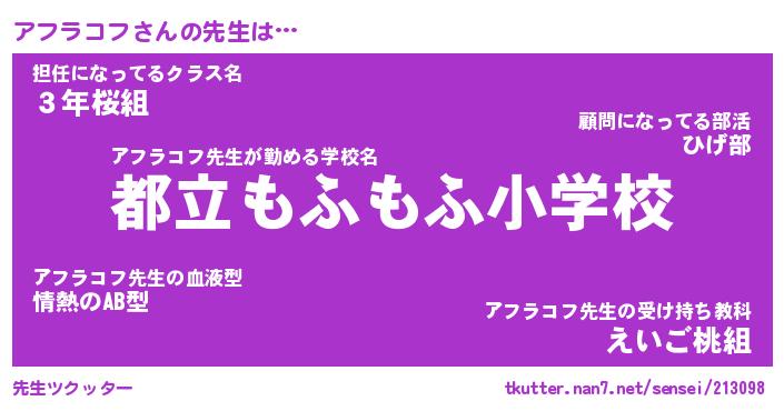 | ファンタジー風あだ名 | 『アフフェル』『エターナルアフラコフー』 |