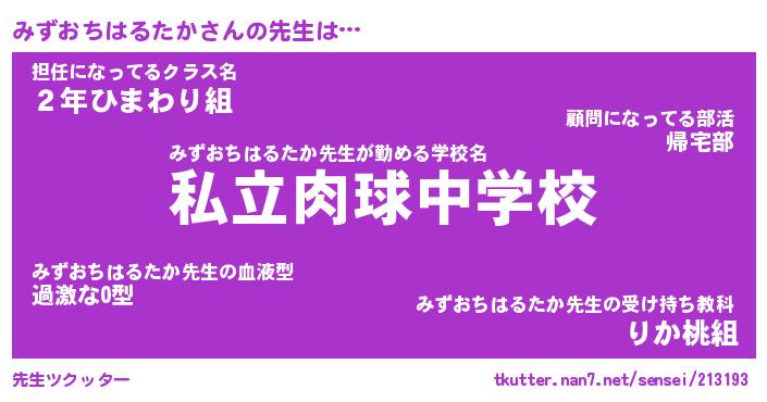 | ヘコむあだ名 | 『みずふぇ~』『なまこ酢』 |