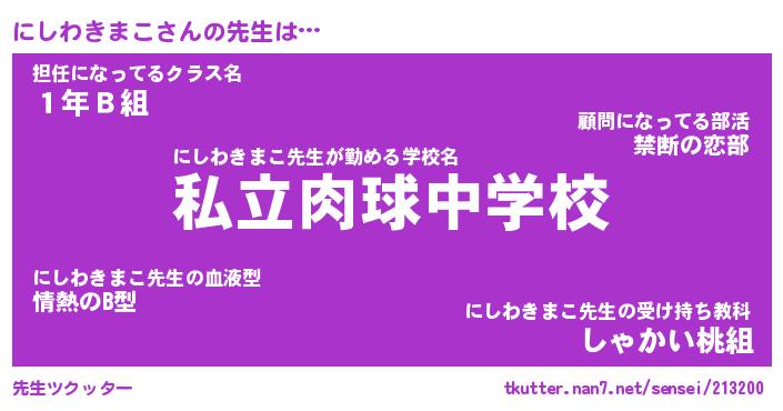 | ヘコむあだ名 | 『にしふぇ~』『牛乳』『にしっちょ』 |