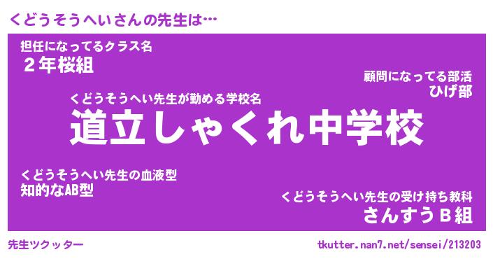 | 肩書あだ名 | 『くどうそうへい御曹司』 |