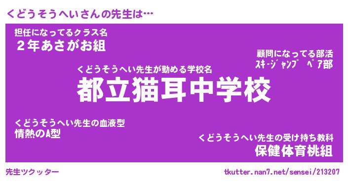 | ヘコむあだ名 | 『くどにー』『豆乳』『くどぷりん』 |