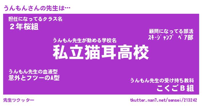 | 意味不明あだ名 | 『ペロリンうんもん』『永久保存うんもん』 |