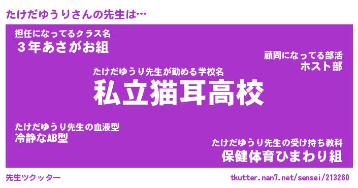 | ヘコむあだ名 | 『たけにー』『レバニラ』『たけお』 |