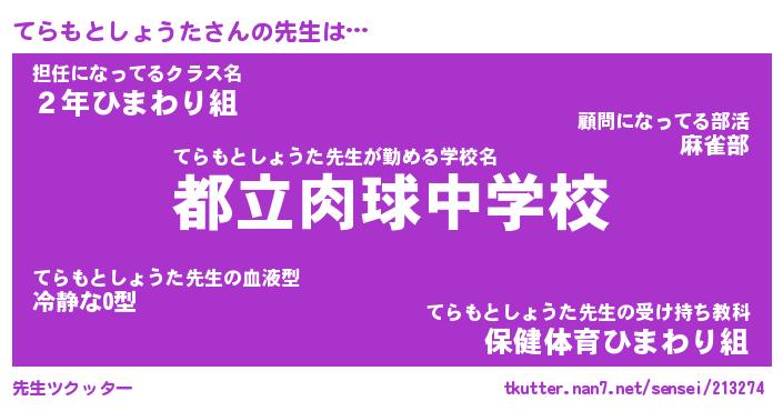 | ヘコむあだ名 | 『てらふぇ~』『なまこ酢』 |