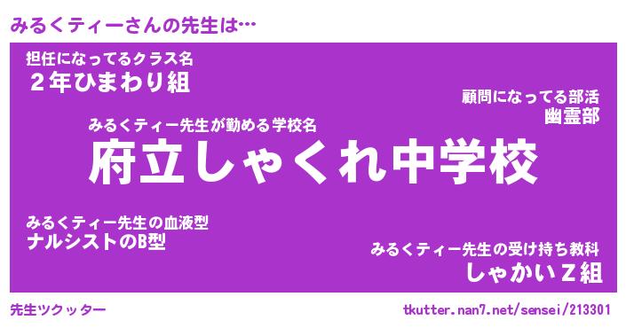 | ヘコむあだ名 | 『みるっふぃ~』『なまこ酢』 |