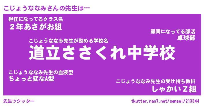 | 伝説のあだ名 | 『不死鳥のスナイパーこじょうななみ』 |