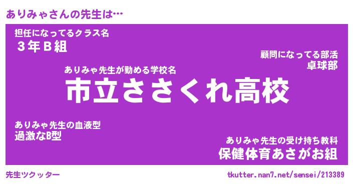 | 伝説のあだ名 | 『伝説のスナイパーありみゃ』 |