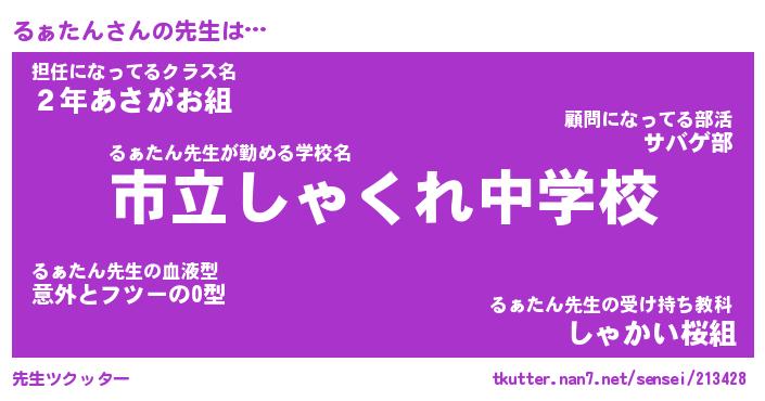 | 意味不明あだ名 | 『ペロリンるぁたん』『永久保存るぁたん』 |