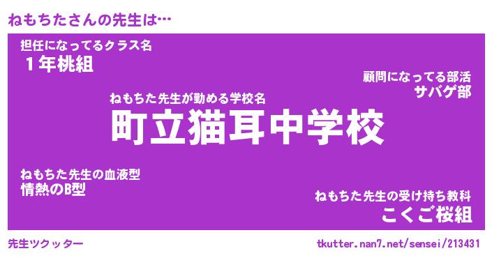 | 意味不明あだ名 | 『ペロリンねもちた』『永久保存ねもちた』 |