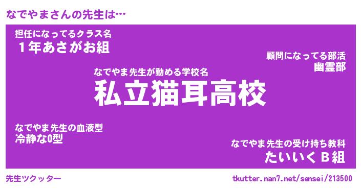 | ヘコむあだ名 | 『なでにー』『つくし』『なでぷりん』 |