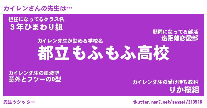 | 意味不明あだ名 | 『ペロリンカイレン』『永久保存カイレン』 |
