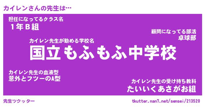 | 意味不明あだ名 | 『ペロリンカイレン』『永久保存カイレン』 |
